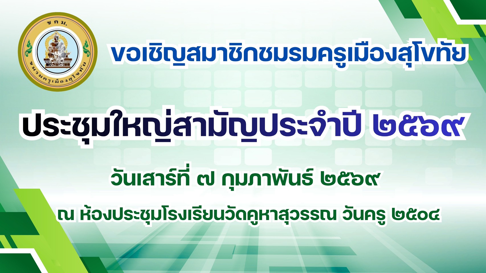 ยินดีต้อนรับเข้าสู่เว็บไซต์ ชมรมครูเมืองสุโขทัย
