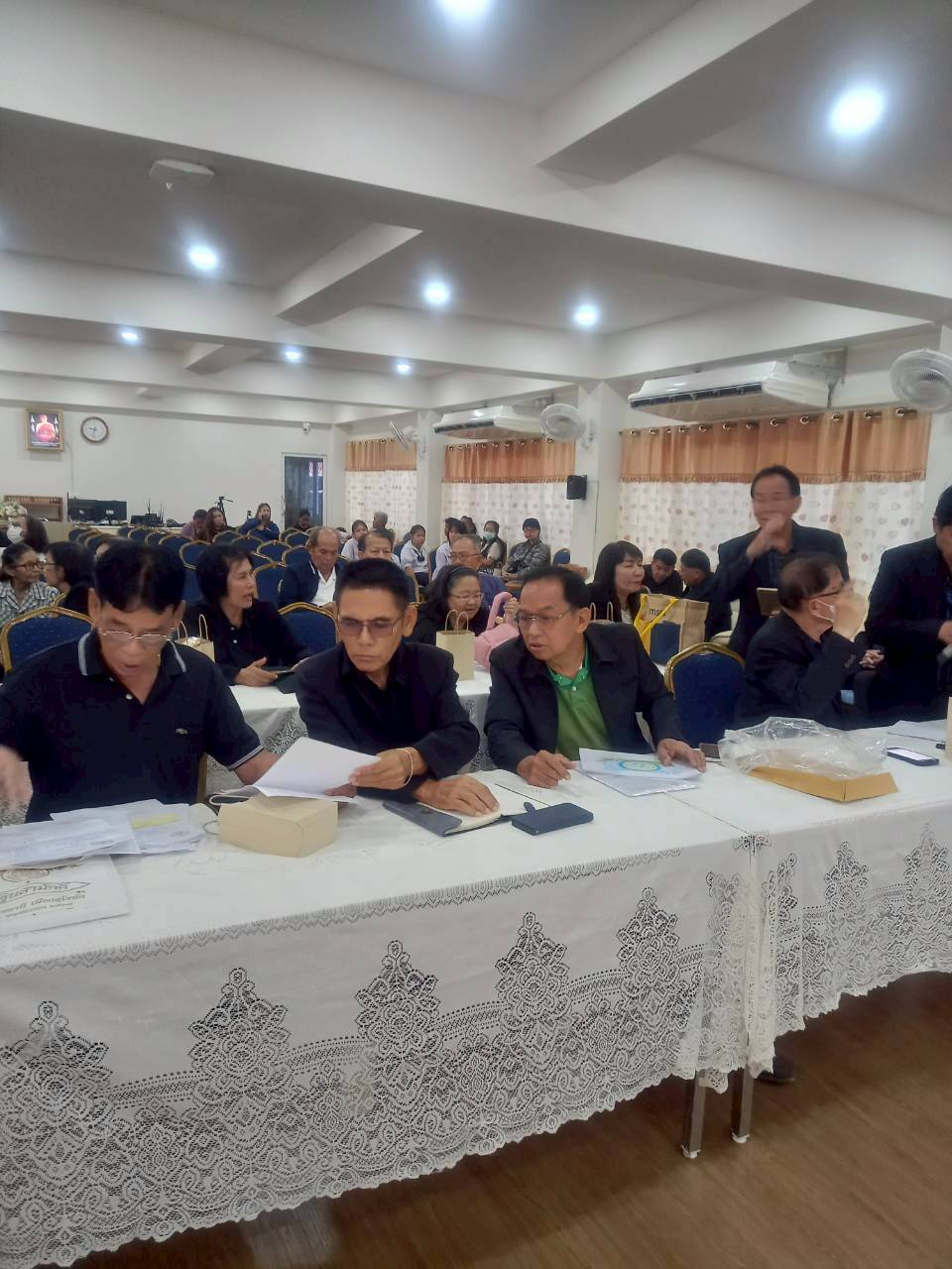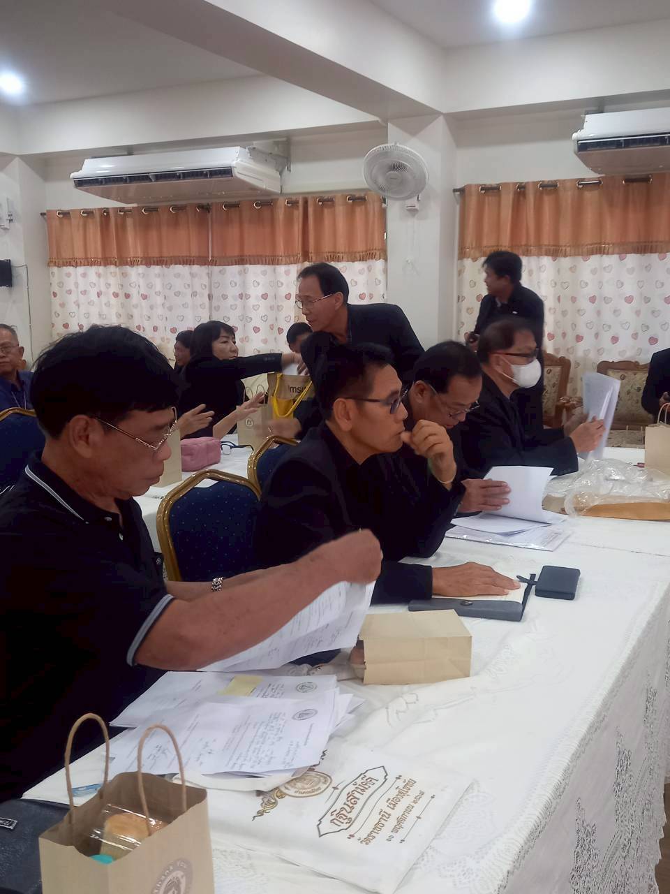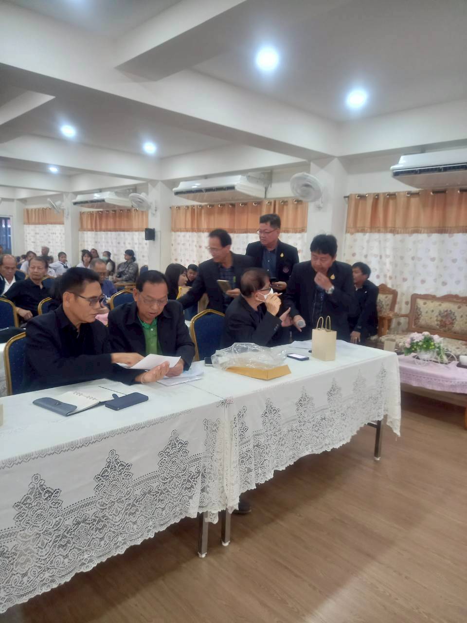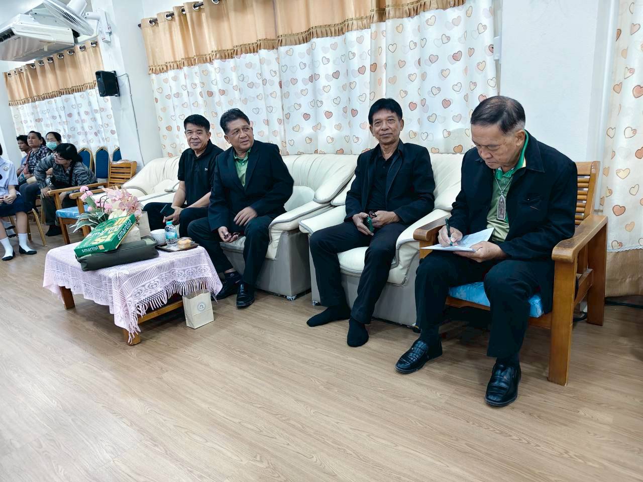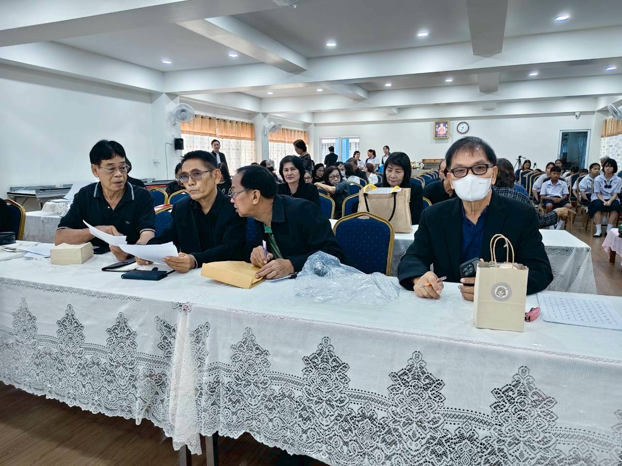 ร่วมกัน ประชุมที่ห้องประุมโรงเรียนวัดคูหาสุวรรณ วันครู 2504